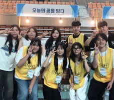 작업치료학과 학생들과 김황용 교수는 이날 경기 진행 지원, 선수 보조, 현장 응원 ..