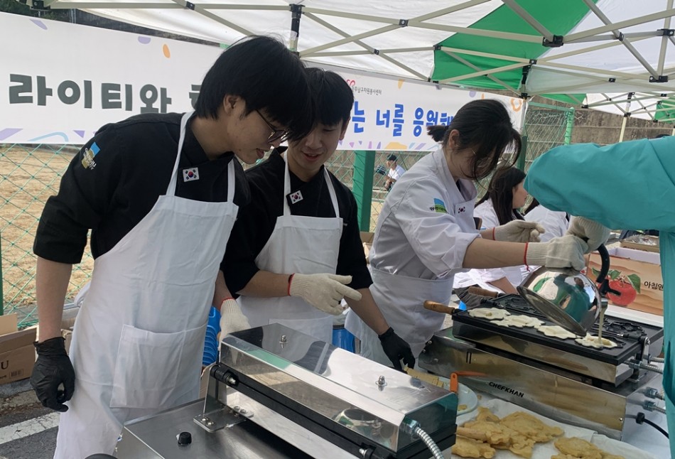 광주대 학생과 교직원 총 25명이 광주남구자원봉사센터와 협력해 진행한 이날 봉사활동에서는 호텔외식조리학과에서 직접 만든 붕어빵, 쿠키, 빼빼로와 음료를 제공하며 따뜻한 마음을 전했다. 또한 그린라이티 치어리딩팀은 생동감 넘치는 댄스 공연으로 현장 분위기를 고조시켰고, 입학홍보단은 라이티 인형 탈을 활용한 이벤트로 고등학생들에게 즐거운 시간을 선사하며 진심 어린 응원 메시지를 전달했다.